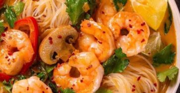 Thai Shrimp Coconut Noodle Soup Silky rice noodles swim in a fragrant coconut-lemongrass broth with plump shrimp, mushrooms, bell peppers,…