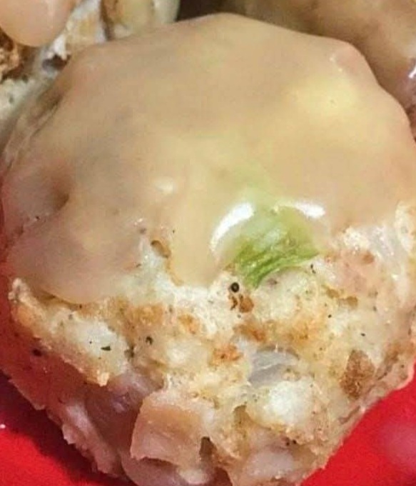 - In a large bowl, combine stuffing, turkey, egg, cheese (if using), and just enough broth to help everything stick together — it should be moist but not mushy.