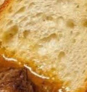 7. Preheat your oven broiler. While the soup is simmering, place the French bread slices on a baking sheet and toast them lightly in the oven.