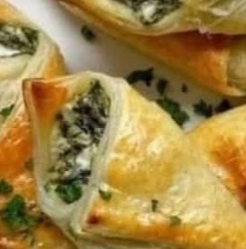 Mixing eggs, milk, oil, water also salt in a bowl. Laying out a sheet filo dough and pour a little of the mixture, spreading it over entire sheet. Repeat twice, for a total of 3 layer Mixing feta cheese and cook spinach and spreading over the filo dough. Rolling from one end to other to get a strip. Cutting to triangles also placing on a baking sheet. Brush every triangle with egg yolk. Sprinkling with poppy seeds and baking at 180°C (356°F) for 15 min