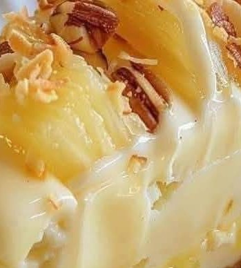 Servez la tarte bien fraîche pour profiter pleinement de sa texture et de ses saveurs. Vous pouvez la décorer avec des tranches d’ananas frais, des noix de pécan ou des flocons de noix de coco pour une présentation élégante.