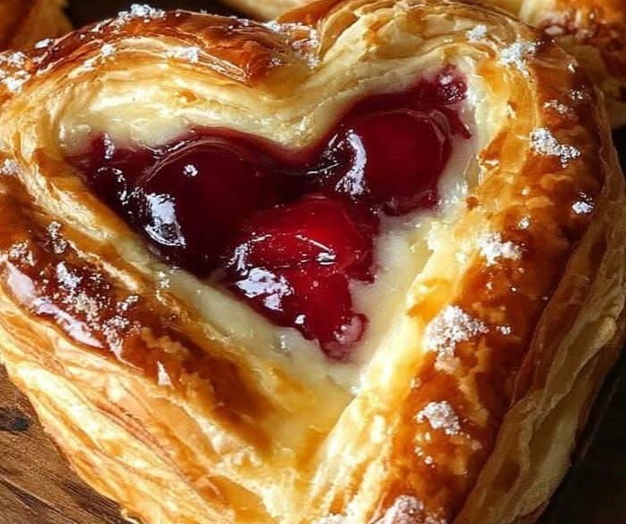 2.Roll out puff pastry slightly cut into heart shapes with cookie cutter or knife