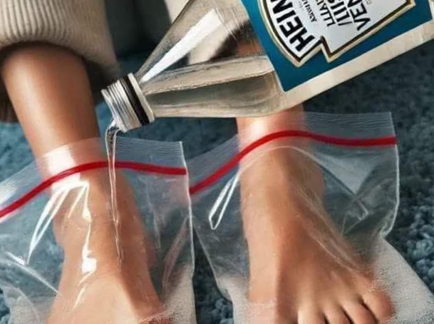 Have you ever thought about using vinegar as part of your foot care regimen? This common household staple, often associated with culinary uses like salads and pickling, actually holds incredible potential as a remedy for various foot-related issues. From revitalizing tired feet to fighting odor and softening rough skin, vinegar offers a multitude of benefits. Let’s explore the wonders of vinegar for your feet and how you can easily incorporate it into your at-home foot care routine.Why Choose Vinegar?Vinegar, especially apple cider vinegar, is renowned for its antimicrobial and acidic properties, which can help restore the natural pH balance of the skin. Its efficacy in combating bacteria and fungi makes it an excellent solution for eliminating foot odor and treating conditions like athlete’s foot. Additionally, vinegar’s astringent qualities help reduce swelling and reinvigorate fatigued, aching feet.Ingredients:1 cup of apple cider vinegar or white vinegar4 cups of warm waterInstructions:Prepare the Soak: In a basin large enough to accommodate your feet comfortably, combine the vinegar with warm water.Soak Your Feet: Immerse your feet in the mixture, allowing them to soak for approximately 15-20 minutes. This is an excellent opportunity to relax, perhaps by reading a book or listening to soothing music.Dry and Moisturize: After the soak, thoroughly dry your feet, paying special attention to the areas between your toes where moisture can persist. To keep your skin soft and hydrated, apply a moisturizer immediately after drying.Benefits of a Vinegar Foot Soak:Eliminates Odor: Vinegar naturally destroys bacteria and fungi, significantly reducing foot odor.Soothes Itchy Skin: The antifungal properties of vinegar help alleviate symptoms of athlete’s foot and other skin irritations that cause itchiness.Softens Skin: Regular vinegar soaks can soften hardened skin and calluses, making your feet smoother and more comfortable.Reduces Swelling: The cooling effect of vinegar helps reduce swelling and alleviate discomfort after a long day on your feet.Additional Tips for Enhanced Foot CareEssential Oils: For added relaxation and enhanced antibacterial effects, consider adding a few drops of essential oils such as lavender or tea tree oil to your foot soak.Exfoliation: If you have particularly rough patches or calluses, gently exfoliate with a pumice stone during the soak for even better results.ConclusionIncorporating vinegar into your foot care routine is a straightforward and cost-effective approach that can lead to remarkable improvements in the health and comfort of your feet. Treat your feet to a soothing vinegar soak, and you might be amazed at how refreshing and beneficial this simple remedy can be!