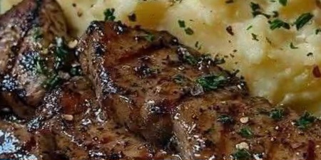 GARLIC BUTTER STEAK BITES AND MASH Ingredients: For the Steak Bites: 1 1/2 lbs sirloin steak, cut into bite-sized pieces4 cloves garlic, minced4 tablespoons unsalted butter2 tablespoons olive oilSalt and pepper to tasteFresh parsley, chopped (for garnish)For the Mashed Potatoes: 2 lbs russet potatoes, peeled and cut into chunks1/2 cup whole milk4 tablespoons unsalted butter1/4 cup sour creamSalt and pepper to tasteDirections: Step 1: Prepare the Mashed PotatoesPlace the potato chunks in a large pot and cover with cold water. Add a pinch of salt and bring to a boil. Cook until the potatoes are fork-tender, about 15-20 minutes. Drain the potatoes and return them to the pot. Add the milk, butter, and sour cream. Mash until smooth and creamy. Season with salt and pepper to taste. Keep warm. Step 2: Cook the Steak BitesIn a large skillet, heat the olive oil over medium-high heat. Season the steak bites with salt and pepper. Add the steak bites to the skillet in a single layer, cooking in batches if necessary. Cook for 2-3 minutes per side, or until browned and cooked to your desired level of doneness. Remove the steak bites from the skillet and set aside. Step 3: Make the Garlic Butter SauceIn the same skillet, reduce the heat to medium. Add the butter and minced garlic. Cook, stirring frequently, until the garlic is fragrant and the butter is melted, about 1-2 minutes. Be careful not to burn the garlic. Step 4: Combine and ServeReturn the cooked steak bites to the skillet and toss to coat them in the garlic butter sauce. Cook for an additional minute to heat through. Serve the garlic butter steak bites over a bed of mashed potatoes. Garnish with chopped fresh parsley. Prep Time: 15 minutes | Cooking Time: 30 minutes | Total Time: 45 minutes | Servings: 4