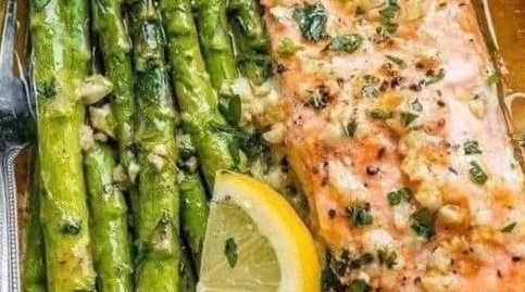 Ingredients4 (6 oz.) salmon fillets, skin removed1 lb. asparagus, trimmed4 tbsp. unsalted butter, melted4 cloves garlic, minced2 tbsp. lemon juice2 tsp. lemon zest Salt and pepper, to taste Fresh parsley, chopped for garnish Salmon is a great source of protein and omega-3 fatty acids, while asparagus is loaded with vitamins and minerals. The lemon garlic butter sauce adds a tangy and savory note that complements the salmon and asparagus perfectly.PreparationPreheat the oven to 375°F (190°C). Cut four sheets of aluminum foil, about 12 inches long. In a small bowl, mix together melted butter, minced garlic, lemon juice, lemon zest, salt, and pepper. Place one salmon fillet in the center of each sheet of foil. Brush each salmon fillet generously with the butter mixture. Divide the asparagus evenly among the four foil packets, placing the asparagus around the salmon fillets. Drizzle the remaining butter mixture over the asparagus. Fold the sides of the foil up over the salmon and asparagus to create a packet, leaving a little space for steam to escape. Bake for 12-15 minutes, or until the salmon is cooked through and flakes easily with a fork. Carefully open the foil packets and garnish the salmon with chopped parsley. Tips for Success Make sure to remove the skin from the salmon fillets before cooking. Use fresh and high-quality ingredients for the best flavor. Do not overcook the salmon to
