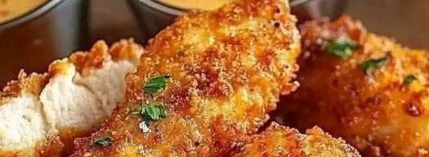 Crispy Chicken Tenders RecipeIngredients1 ½ lbs chicken tenders (or chicken breast cut into strips)1 cup buttermilk (or plain yogurt)1 tsp garlic powder1 tsp onion powder1 tsp paprika½ tsp black pepper½ tsp salt2 cups panko breadcrumbs1 cup all-purpose flour2 large eggsVegetable oil (for frying)Fresh parsley (for garnish, optional)InstructionsMarinate the chicken: Place chicken tenders in a bowl, add buttermilk, garlic powder, onion powder, paprika, salt, and pepper. Mix well, cover, and refrigerate for at least 30 minutes (up to overnight for best flavor).Prepare coating stations:Plate 1: Flour seasoned with a pinch of salt and pepper.Plate 2: Beaten eggs.Plate 3: Panko breadcrumbs.Coat the chicken: Remove chicken from buttermilk marinade. Dredge each strip in flour, then dip into eggs, and finally coat generously with breadcrumbs. Press lightly to help crumbs stick.Fry: Heat oil in a deep skillet or fryer to 350°F (175°C). Fry chicken tenders in batches until golden brown and crispy, about 4–5 minutes per side. Place on a paper towel–lined plate to drain excess oil.Serve: Garnish with chopped parsley and serve hot with honey mustard, ranch, or your favorite dipping sauce.Time & YieldPrep Time: 20 minutesCook Time: 15 minutesTotal Time: 35 minutesYield: 4 servingsenjoy ❣️