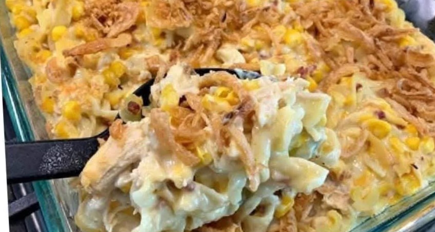 Ingredients2 cups of cooked egg noodles2 cups of chicken, cooked and shredded2 cups of corn (you can use fresh, frozen, or canned)1 cup of milk2 10oz cans of cream of chicken soup1 onion, diced1 tbsp of minced garlic½ cup of shredded cheese (I use cheddar, but any cheese will do)¾ cup of french-fried onionsSalt and pepper to tastePreparationPreheat your oven to 350 degrees Fahrenheit. While the oven is preheating, grease a 9 by 13 baking dish with cooking spray.In a medium bowl, mix the cooked egg noodles, shredded chicken, corn, milk, cream of chicken soup, onion, garlic, cheese (add extra if you like it extra cheesy!) bacon, and add salt and pepper to taste.Pour the chicken mixture into your greased pan. When the oven is preheated, place the pan into the oven and bake for approximately 30 minutes. Remove from the oven and serve the ultimate chicken warm and enjoy!