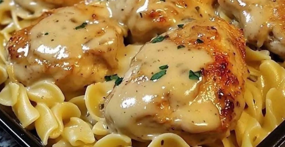 Looking for an easy yet flavorful dinner? This One-Pan Chicken with Creamy Buttered Noodles is perfect for a weeknight meal. With juicy chicken breasts paired with creamy, buttery noodles, it’s sure to become a family favorite in no time!Ingredients:For the Chicken:4 boneless, skinless chicken breastsSalt and pepper to taste2 tbsp olive oilFor the Noodles:8 oz egg noodles3 garlic cloves, minced2 cups chicken broth1 cup heavy cream3 tbsp butter1/4 cup grated Parmesan cheeseFor Garnish:Fresh parsley, chopped (optional)Step-by-Step Instructions:Cook the Chicken:Heat olive oil in a large skillet over medium heat. Season the chicken breasts generously with salt and pepper.Once the oil is hot, add the chicken and cook for about 5-6 minutes on each side until golden brown and cooked through. Remove from the skillet and set aside.2️⃣ Prepare the Noodles:In the same skillet, add the minced garlic and sauté for about 1 minute until fragrant.Pour in chicken broth and heavy cream, bringing the mixture to a gentle simmer.3️⃣ Cook the Noodles:Stir in the egg noodles, cover, and cook for 8-10 minutes until they are tender. Stir occasionally to prevent sticking.4️⃣ Combine Ingredients:Once the noodles are cooked, reduce the heat to low. Add butter and grated Parmesan cheese, stirring until both melt and the sauce becomes creamy.Return the chicken to the skillet and allow it to heat through for a couple of minutes.5️⃣ Serve:Garnish with fresh parsley if desired, and serve the dish warm, spooning the creamy sauce over the chicken and noodles.Why You’ll Love This One-Pan Chicken with Creamy Buttered Noodles:Quick and Easy: This dish is ready in just 35 minutes—perfect for a busy weeknight dinner.Creamy and Comforting: The rich sauce and tender noodles make this a satisfying meal.Flavorful Chicken: The chicken stays juicy and full of flavor thanks to the sear and the creamy sauce.Perfect for Meal Prep: You can make this dish in advance, and it stores well in the fridge for a quick reheat!Pro Tips:For a lighter version, use chicken breast tenderloins or ground chicken.Add veggies: Feel free to throw in spinach, mushrooms, or even peas for a boost of nutrition and color.Make it cheesy: For extra cheesy flavor, sprinkle more Parmesan on top before serving.Nutritional Information:Servings: 4Calories per serving: ~450Fat: 23gCarbs: 40gProtein: 30gFinal Thoughts:This One-Pan Chicken with Creamy Buttered Noodles is a super easy, satisfying meal perfect for any occasion. You’ll love how quickly it comes together, and it’s sure to be a crowd-pleaser at the dinner table!
