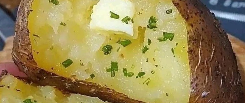 Baked Potato This is the fastest way to make baked potatoes, ready in minutes. It’s crispy on the outside, perfectly cooked and fluffy on the inside Must express PERFECT BAKED POTATO RECIPE Ingredients:* 2 large **Russet potatoes*** 2 tablespoons **olive oil** or **melted butter**Salt. to tasteBlack pepper**, to taste2 tablespoons **chopped green onions or chivesOptional toppings:Sour creamShredded cheeseCrispy bacon bitsGarlic butterGrated parmesan Instructions:1. **Preheat the Oven*** Preheat your oven to **425°F (220°C)**.2. **Wash and Prep the Potatoes*** Scrub the potatoes well and dry them completely.* Use a fork to **pierce each potato 3–4 times** on all sides.3. **Season*** Rub each potato with olive oil or butter.* Sprinkle generously with salt (you can also add garlic powder or herbs).4. **Bake*** Place directly on the oven rack or on a baking tray lined with parchment.* Bake for **45 to 60 minutes**, depending on size, until the skin is crispy and a fork easily pierces the center.5. **Serve*** Cut the potato open lengthwise.* Fluff the inside with a fork.* Add a **pat of butter**, sprinkle with **salt, pepper**, and **chopped green onions**.* Finish with your favorite toppings.Enjoy.