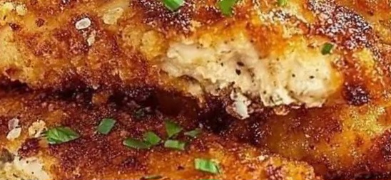 Ingredients:1 lb (450 g) chicken breasts, cut into strips1 cup all-purpose flour2 large eggs1/4 cup milk1 cup panko breadcrumbs1/2 cup grated Parmesan cheese1 teaspoon garlic powder1/2 teaspoon paprika1/2 teaspoon black pepper1/2 teaspoon saltVegetable oil for fryingFresh chopped chives (optional, for garnish).Instructions:Prepare the Breading Station:Place the flour in a shallow dish.In a second dish, whisk the eggs and milk together.In a third dish, combine the panko breadcrumbs, Parmesan cheese, garlic powder, paprika, black pepper, and salt.Coat the Chicken:Dredge each chicken strip in the flour, shaking off excess.Dip into the egg mixture, ensuring it’s fully coated.Finally, press into the breadcrumb mixture, coating evenly.Heat the Oil:Heat about 1 inch of vegetable oil in a deep skillet or frying pan over medium-high heat (approximately 350°F/175°C).Fry the Chicken:Carefully place the breaded chicken strips into the hot oil. Fry for 3-4 minutes per side or until golden brown and fully cooked (internal temperature should reach 165°F/74°C).Remove and place on a plate lined with paper towels to drain excess oil.Serve:Garnish with fresh chopped chives and serve immediately with your favorite dipping sauces (e.g., honey mustard, ranch, or spicy mayo).Tips:For a healthier version, bake the tenders in a preheated oven at 400°F (200°C) for 20-25 minutes, flipping halfway through.Use an air fryer for a crispy texture with less oil—cook at 375°F (190°C) for 12-15 minutes.Add cayenne pepper or chili flakes for a spicy kick.These chicken tenders are best enjoyed fresh but can also be reheated for a quick and easy meal. Bon appétit!.TipsTo achieve perfectly crispy Parmesan chicken tenders, start by using panko breadcrumbs mixed with grated Parmesan for the coating.Panko creates a lighter, crunchier texture compared to regular breadcrumbs.For extra crispiness, toast the breadcrumbs in a skillet with a touch of oil before coating the chicken.This step ensures a golden-brown crust that’s both visually appealing and delicious..When breading the tenders, use a three-step method: dredge in flour, dip in beaten eggs, and coat with the breadcrumb-Parmesan mixture.Press the coating gently onto the chicken to ensure it sticks well.Bake the tenders on a wire rack placed over a baking sheet for even heat distribution, or air fry them for a quicker, equally crispy alternative.VariationsFor a spicier version, add cayenne pepper, paprika, or chili flakes to the breadcrumb mixture.You can also mix in Italian seasoning or fresh herbs like parsley and thyme for an aromatic twist.Using garlic powder or onion powder in the coating adds another layer of flavor that complements the Parmesan beautifully..For a gluten-free alternative, substitute the flour and breadcrumbs with almond flour or crushed gluten-free crackers.If you prefer a dairy-free option, replace Parmesan with nutritional yeast for a cheesy flavor without the cheese.Experiment with dipping sauces like marinara, honey mustard, or ranch to match different flavor profiles..ConclusionCrispy Parmesan chicken tenders are a deliciously satisfying dish that strikes the perfect balance between savory, cheesy flavors and a crunchy texture..They’re easy to prepare and make for a versatile meal or snack that both kids and adults will love. With simple tips and techniques, you can replicate that restaurant-quality crispiness right in your kitchen..Whether you stick to the classic recipe or try creative variations, these chicken tenders are bound to become a favorite in your household.Serve them as an appetizer, main dish, or part of a party spread, and enjoy a dish that’s as fun to make as it is to eat