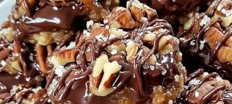 Anyone that knows me knows I LOVE and make The Best Chocolate Pecan Turtle Clusters. Just the combination of the pecan clusters mixed with creamy caramel and chocolate and a light sprinkling of coarse salt makes me shudder with anticipation just thinking about it!INGREDIENTS2 1/2 cup pecan halves1 stick butter butter1 packed cup brown sugar1/2 cup light corn syrup3/4 cup + 2 tablespoons sweetened condensed milk1/2 teaspoon vanilla1 12 ounce package milk chocolate chips1/2 teaspoon shorteningHow to Make Chocolate Pecan Turtle ClustersIn a large skillet, toast the pecans over medium high heart for a few minutes.Line 2 large baking sheets with parchment paper and spray with nonstick cooking spray.Arrange the toasted pecans in groups of 3 leaving about an inch of space between each group. Set aside.In a medium saucepan, melt the butter over medium-high heat.Stir in the brown sugar, corn syrup, and sweetened condensed milk. Cook and stir continuously until it reaches 235-240F on a candy thermometer.Remove from heat and stir in the vanilla.Drizzle about 1/2 tablespoon of caramel over each cluster, set aside.Fill a pot about 1/4 of the way with water, and fit with a bowl that wont touch the bottom of the pot to create a double boiler.Heat the pot over medium heat.After letting it heat up for a few minutes, start to stir the chocolate chips until they are fully melted and smooth.Stir in the shortening and spoon about 1/2 tablespoon on the top of each cluster.Once the chocolate has cooled serve immediately or store in an airtight container with parchment paper between each layer of clusters.