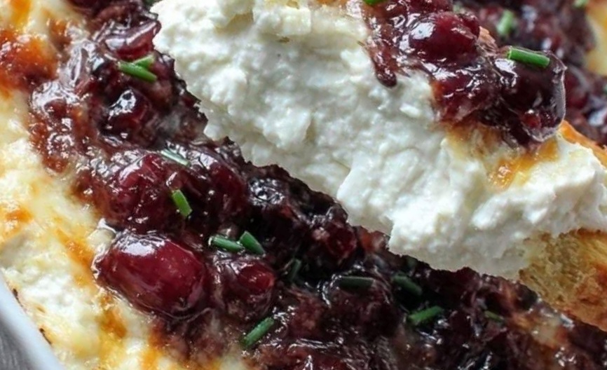 Ingredients:1 cup shredded white cheddar cheese1 cup softened cream cheese½ cup mayonnaise¼ cup grated Parmesan cheese1 teaspoon garlic powder½ teaspoon onion powder½ teaspoon black pepper¼ teaspoon salt (or to taste)1 cup whole berry cranberry sauce (canned or homemade)1 tablespoon chopped fresh chives (for garnish)Crackers, baguette slices, or pita chips (for serving)Instructions:1. Preheat OvenHeat oven to 375°F (190°C).2. Mix the BaseIn a medium bowl, combine cream cheese, mayonnaise, white cheddar, Parmesan, garlic powder, onion powder, salt, and black pepper. Mix until smooth and creamy.3. Bake the DipSpread the mixture evenly into a greased baking dish.Bake for 20–25 minutes or until hot and bubbly with golden edges.4. Add the ToppingRemove from oven and spoon cranberry sauce evenly over the top.5. Garnish & ServeSprinkle with chopped fresh chives.Serve warm with crackers, toasted baguette slices, or pita chips.Perfect for the holidays — creamy, cheesy, and sweet-tart all in one bite!