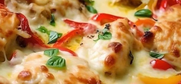 I have this delightful memory from when we first moved into our new home. I wanted to surprise my family with a heartwarming dinner, something that felt both homely and special. That’s when I discovered the recipe for Cheesy Baked Chicken and Peppers. Imagine tender chicken paired with a trio of bell peppers, all smothered under a blanket of melty cheeses. The result? An explosion of flavors that has since made its way into our regular meal rotation. Trust me, you’ll be fielding recipe requests each time you serve it up!Ingredients4 boneless, skinless chicken breasts1 red bell pepper, sliced1 yellow bell pepper, sliced1 green bell pepper, sliced2 garlic cloves, finely chopped1 teaspoon paprika1 teaspoon dried oreganoSalt and freshly ground black pepper, to preference1 cup of cheddar cheese, shredded1/2 cup parmesan cheese, finely grated3 tablespoons of high-quality olive oilFresh parsley leaves, finely chopped, for garnishingPreparationGet your oven heating up to 375°F.As that’s going on, grab a bowl large enough for all your chicken. Toss in your chicken, garlic, paprika, oregano, a pinch of salt, some cracked black pepper, and drizzle in that olive oil. Make sure every piece of chicken is well-coated.Introduce the sliced peppers to this flavor party and give it another good mix.Transfer this mix into a 9×13 casserole dish. Spread it out for even cooking.Now, for the best part – shower your dish with cheddar and parmesan cheeses.Pop it into the oven. After about 25-30 minutes, your kitchen should be filled with the aromas of well-cooked chicken, roasted peppers, and of course, the tantalizing scent of bubbling cheese.Once done, pull it out and immediately sprinkle on some freshly chopped parsley.Dish it out while it’s hot and bask in the compliments!For those of you juggling busy schedules, this Cheesy Baked Chicken and Peppers is a game-changer. It’s uncomplicated, friendly on the wallet, and oh-so scrumptious. Once you try it, I’m pretty sure it’ll earn a permanent spot on your family’s go-to recipe list. Enjoy!