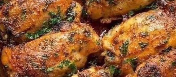 Ingredients°4 onions, peeled and quartered°60 ml (¼ cup) olive oil°4 chicken thighs with skin on°8 unpeeled garlic cloves°45 ml (3 tbsp.) chopped coriander°1 lime, for juice°10 ml (2 tsp.) black pepper, cracked°30 ml (2 tbsp.) honeyPreparationPut the barbecue at the focal point of the broiler. Preheat broiler 200°C (400°F).In skillet on medium-high intensity, carmelizing onions in 30 ml (2 tsp) of the oil.In an enormous baking dish, consolidate the chicken thighs with the onions and the other fixings with the exception of the honey. Salt. Brush thighs with honey.Heat for 1 hour or until the chicken tissue effectively disengages from the bone, treating the thighs with the skillet squeezes partially through cooking. Present with pineapple and pepper ketchup (see recipe) and a green vegetable, like shriveled spinach.Enjoy !