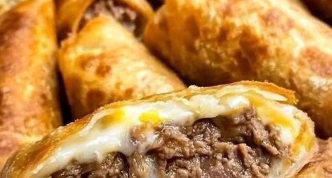 About This RecipeThis recipe is for Philly Cheesesteak Egg Rolls, a fusion appetizer that combines the classic flavors of a Philadelphia cheesesteak sandwich with the crispy texture of a fried egg roll wrapper. The filling consists of thinly sliced steak, cheese, and vegetables, all wrapped and deep-fried or baked until golden brown.Why You’ll Love This RecipeThis recipe transforms a familiar sandwich into a portable, shareable finger food ideal for parties and gatherings. The contrast between the hot, savory, cheesy filling and the crispy exterior is a key textural element. The cooking process for the filling is straightforward, and assembly can be done in advance.Ingredients1 tablespoon vegetable oil, plus more for frying1/2 green bell pepper, finely chopped1/2 small onion, finely chopped8 ounces ribeye steak, thinly sliced or shavedSalt and black pepper to taste6 slices provolone cheese, chopped12 egg roll wrappers1 tablespoon water1 large egg, beaten (optional, for sealing)Step by Step InstructionsHeat one tablespoon of vegetable oil in a large skillet over medium-high heat.Add the chopped bell pepper and onion to the skillet. Cook, stirring occasionally, until the vegetables have softened, about 5-7 minutes.Add the thinly sliced ribeye steak to the skillet with the vegetables. Season with salt and pepper. Cook, breaking up the meat, until the steak is no longer pink, about 3-5 minutes.Transfer the steak and vegetable mixture to a bowl and allow it to cool for 5-10 minutes.Stir the chopped provolone cheese into the slightly cooled steak mixture until combined.Lay one egg roll wrapper on a clean surface with one corner pointing toward you (diamond shape).Place about 2 tablespoons of the filling in the center of the wrapper.Fold the bottom corner of the wrapper up over the filling. Fold the left and right corners inward toward the center.Roll the bundle tightly toward the top corner. Moisten the top corner with a small amount of water or beaten egg to seal the egg roll shut. Repeat with remaining wrappers and filling.Heat 2-3 inches of vegetable oil in a heavy-bottomed pot or deep skillet to 350°F (175°C).Working in batches to avoid overcrowding, carefully place the egg rolls in the hot oil. Fry for 2-4 minutes, turning occasionally, until golden brown and crispy.Remove the egg rolls from the oil and drain on a wire rack or a plate lined with paper towels. Serve warm.FAQCan I bake these instead of frying?Yes. For a baked version, preheat the oven to 400°F (200°C). Place the assembled egg rolls on a baking sheet lined with parchment paper, brush lightly with oil, and bake for 15-20 minutes, turning halfway through, until golden and crispy.What kind of cheese can I use instead of provolone?Cheese Whiz is a traditional choice for Philadelphia cheesesteaks. White American cheese or mozzarella are also common substitutes that provide a similar melting quality.Can I make these ahead of time?Assembled, uncooked egg rolls can be arranged on a baking sheet, frozen solid, and then transferred to a freezer bag for storage. Fry or bake directly from frozen, adding a few extra minutes to the cooking time.You Must KnowThis is an American fusion dish, not a traditional recipe from any Asian cuisine. Ensuring the filling is completely cooled before assembling is critical to prevent the wrappers from becoming soggy and tearing. Maintaining a consistent oil temperature of 350°F (175°C) is key to achieving a crispy, non-greasy exterior without burning.Storage TipsCool cooked egg rolls completely before storing. Refrigerate in an airtight container for up to 3 days. Reheat in an oven or air fryer at 375°F (190°C) for 5-10 minutes to restore crispiness; microwaving will result in a soft wrapper. For longer storage, freeze cooked and cooled egg rolls in a single layer before transferring to a freezer bag for up to 2 months. Reheat from frozen in an oven or air fryer.