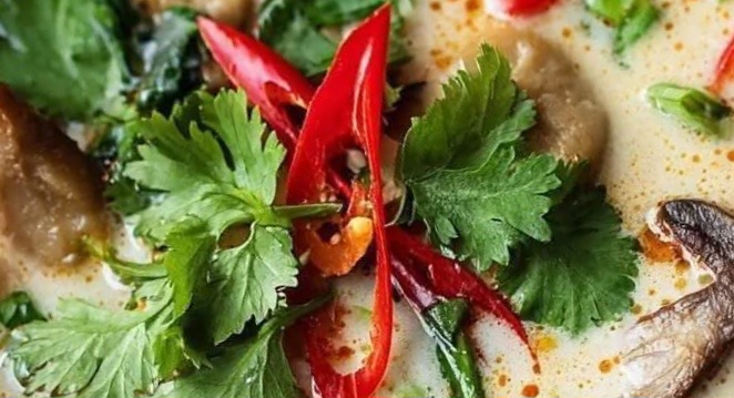 Thai Coconut Soup (Tom Kha Gai)Ingredients:2 cups chicken broth (or vegetable broth for vegan)1 can (13.5 oz) coconut milk (full-fat for creaminess)1 lb chicken breast (thinly sliced, or tofu/shrimp for variation)3-4 slices galangal (or ginger if unavailable)2 stalks lemongrass (bruised & cut into 2-inch pieces)4-5 kaffir lime leaves (torn for aroma)1-2 Thai chilies (sliced, adjust for spice)1 cup mushrooms (straw or shiitake)1 tbsp fish sauce (or soy sauce for vegan)1 tbsp lime juice (adjust to taste)1 tsp palm sugar (or brown sugar)Fresh cilantro & Thai basil for garnishInstructions:Simmer broth with lemongrass, galangal, and lime leaves for 5 mins to infuse flavors.Add chicken (or tofu/shrimp) and mushrooms, cook until tender (~5-7 mins).Reduce heat, add coconut milk, fish sauce, sugar, and chilies. Warm gently (don’t boil hard).Turn off heat, stir in lime juice. Taste—balance sweet, salty, sour, and spicy.Garnish with cilantro & basil. Serve hot with steamed rice!Tips:Vegan? Use tofu + veggie broth + soy sauce.Extra creamy? Add a splash of coconut cream.No galangal/kaffir leaves? Use ginger + lime zest (less authentic but works).Enjoy your aromatic, creamy, and tangy Thai coconut soup