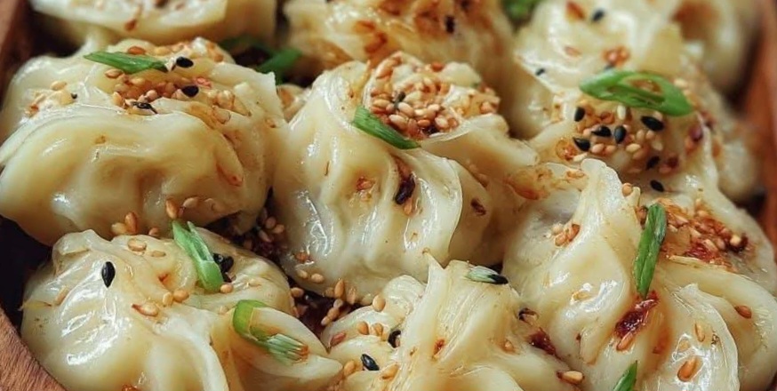 Recipe Introduction: These delicious dumplings are filled with a savory mix of vegetables and seasonings, wrapped in soft, chewy dough, and topped with sesame seeds and green onions. Whether steamed or pan-fried, these dumplings are a perfect snack or appetizer to enjoy with a dipping sauce!Ingredients:Dumpling wrappers (store-bought or homemade)1 cup shredded cabbage1/2 cup grated carrots1/2 cup chopped green onions1/2 cup chopped shiitake mushrooms (or any mushrooms of your choice)1 tablespoon sesame oil1 tablespoon soy sauce1 tablespoon rice vinegar1 tablespoon cornstarch (for binding)1/4 teaspoon ground ginger1/4 teaspoon black pepper1 tablespoon sesame seeds (for garnish)Additional green onions (for garnish)Instructions:Prepare the filling:In a large mixing bowl, combine the shredded cabbage, grated carrots, chopped mushrooms, and green onions.Add the sesame oil, soy sauce, rice vinegar, ground ginger, black pepper, and cornstarch. Mix well to combine and ensure the filling has a cohesive texture.Assemble the dumplings:Place a small spoonful of the filling in the center of each dumpling wrapper.Carefully fold and pinch the edges to form a pleated shape. Ensure the dumpling is sealed tightly to avoid leaks during cooking.Cooking methods:For steaming: Arrange the dumplings on a steamer basket lined with parchment paper. Steam over simmering water for about 10-12 minutes or until the filling is cooked through and the dumplings are tender.For pan-frying: Heat a little oil in a non-stick skillet over medium heat. Place the dumplings in the skillet and cook for 2-3 minutes until the bottoms are golden brown. Add a small amount of water to the skillet, cover, and let the dumplings steam for another 5-7 minutes until fully cooked.Serve:Once the dumplings are cooked, garnish with sesame seeds and chopped green onions.Serve with your favorite dipping sauce (soy sauce or a spicy chili sauce works great!).Enjoy your homemade dumplings!
