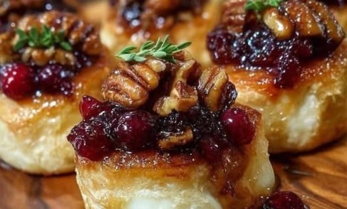 Place the assembled brie bites on the prepared baking sheet. Bake for 15-20 minutes, or until the puff pastry is golden and flaky, and the brie is melted and gooey inside.