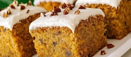 IngredientsFor the cake: 2 teaspoons baking powder 2 cups (250g) all-purpose flour 1/2 teaspoon salt 1/2 teaspoon baking soda 1/2 teaspoon ground nutmeg 1 cup (200g) granulated sugar 1 teaspoon ground cinnamon 4 large eggs 1 cup (240ml) vegetable oil 1/2 cup (120g) chopped walnuts or pecans (optional) 2 cups (240g) grated carrots For the cream cheese frosting: 8 oz (225g) cream cheese, softened 2 cups (250g) powdered sugar 1/2 cup (115g) unsalted butter, softened 1 teaspoon vanilla extract Chopped nuts for garnish (optional) Instructions Preheat your oven to 350°F (180°C). Line a square baking pan with parchment paper or grease it well.In a medium bowl, whisk together the flour, baking powder, baking soda, salt, cinnamon, and nutmeg.In a large bowl, mix the sugar and vegetable oil until smooth. Add eggs one at a time, mixing well after each addition.Gradually fold in the dry ingredients, followed by the grated carrots and nuts, if using.Pour the batter into the prepared pan and spread it evenly. Bake for 35–40 minutes, or until a toothpick inserted into the center comes out clean. Allow it to cool completely.To prepare the frosting, beat the cream cheese and butter until smooth and creamy. Gradually add powdered sugar and vanilla extract, mixing until fluffy.Spread the frosting evenly over the cooled cake. Garnish with chopped nuts, if desired.Slice into squares and serve.Enjoy!!