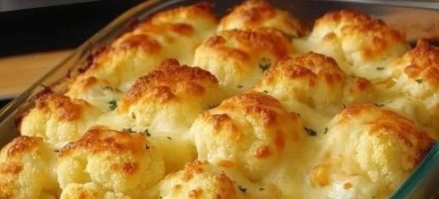 Transfer the roasted cauliflower to a greased baking dish.