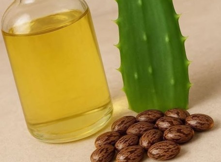 - In a clean bowl, mix the castor oil and aloe vera gel until well combined.