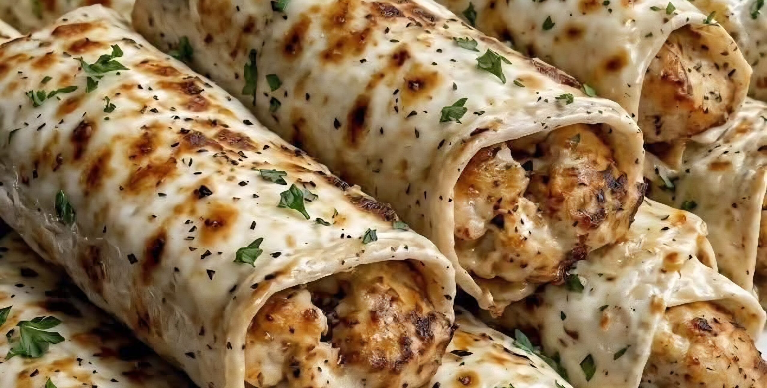 Introduction to Cheesy Garlic Chicken WrapsCheesy Garlic Chicken Wraps are a flavorful, handheld meal that combines tender, seasoned chicken with a rich and gooey cheese filling, all wrapped up in a soft tortilla. Infused with the aromatic goodness of garlic, these wraps offer a satisfying balance of savory and cheesy flavors. Perfect for lunch, dinner, or even a quick snack, this dish is loved for its versatility and ease of preparation. It’s a comforting yet simple meal that is sure to please cheese and garlic lovers alike.Origin and Cultural SignificanceWhile wraps as a culinary concept have been around for centuries, particularly in Mediterranean and Middle Eastern cuisines (such as shawarma or falafel wraps), the cheesy garlic chicken wrap is a more modern, American-inspired dish. It draws from the global love for both grilled chicken and cheesy, garlic-infused flavors, combining them into a portable and convenient meal. The wrap format has become increasingly popular in fast casual dining and home cooking, offering a quick and customizable way to enjoy a hearty meal. The cheesy garlic component adds an indulgent twist, making this wrap not only satisfying but deliciously comforting.Ingredients and QuantityFor the Chicken:2 boneless, skinless chicken breasts (about 1 lb)2 tbsp olive oil3 cloves garlic (minced)1 tsp paprika1 tsp onion powder½ tsp dried thymeSalt and pepper to tasteFor the Cheesy Garlic Sauce:½ cup cream cheese (softened)1/2 cup shredded mozzarella cheese1/4 cup grated parmesan cheese2 tbsp butter (melted)2 cloves garlic (minced)1 tsp dried parsley (optional)For the Wraps:4 large flour tortillas (whole wheat or spinach tortillas work as alternatives)1 cup fresh spinach or lettuce (optional, for added crunch)1 tomato (sliced, optional)Optional Additions:Veggies: Add sautéed onions, bell peppers, or mushrooms for extra flavor and texture.Spicy Kick: Include a dash of crushed red pepper flakes or a drizzle of hot sauce for some heat.Avocado: Sliced avocado adds a creamy texture and freshness to the wraps.Bacon: Cooked and crumbled bacon adds an extra smoky flavor.Tips for SuccessCook the Chicken Properly: For the juiciest chicken, cook it over medium heat in a hot skillet to get a nice sear on the outside while keeping the inside tender and moist.Don’t Overdo the Garlic Sauce: While garlic is the star of this dish, avoid overdoing the garlic sauce to ensure it doesn’t overpower the chicken.Cheese Variety: Feel free to mix up the cheese options. Cheddar, gouda, or provolone can all work well alongside mozzarella and parmesan for different flavor profiles.Assemble Carefully: Layer the chicken, sauce, and any veggies in the wrap evenly to ensure each bite has a balance of flavors.Toasting the Wraps: After assembling the wraps, you can toast them on a skillet or in a grill pan for 1-2 minutes per side to create a crispy, golden exterior.Instructions1. Prepare the Chicken:Heat olive oil in a large skillet over medium heat.Season the chicken breasts with paprika, onion powder, thyme, salt, and pepper.Add the minced garlic to the skillet and cook for about 1 minute, then add the chicken breasts and cook for 6-7 minutes per side, or until the internal temperature reaches 165°F (75°C).Once cooked, remove the chicken from the skillet and set it aside to rest for a few minutes before slicing it thinly.2. Make the Cheesy Garlic Sauce:In a small saucepan, melt the butter over medium heat. Add the minced garlic and cook for 1 minute, until fragrant.Reduce the heat to low and add the cream cheese, mozzarella cheese, and parmesan cheese. Stir continuously until the cheese is melted and the sauce is smooth.Remove from heat and stir in the dried parsley if using. Set aside.3. Assemble the Wraps:Lay the tortillas flat on a clean surface.If using, layer some spinach or lettuce in the center of each tortilla for crunch and freshness.Add a few slices of the cooked chicken on top of the greens.Spoon a generous amount of the cheesy garlic sauce over the chicken.If desired, add tomato slices or other veggies, and top with any optional ingredients like bacon or avocado.4. Wrap and Serve:Carefully fold the sides of the tortilla inward and then roll it up tightly to encase the filling.If you want a crispy finish, place the wraps seam-side down on a skillet over medium heat and toast for 1-2 minutes on each side until golden brown.Slice the wraps in half and serve hot.DescriptionCheesy Garlic Chicken Wraps are a satisfying blend of savory, cheesy, and garlicky flavors all wrapped up in a warm, soft tortilla. The chicken is perfectly seasoned and complemented by the creamy, cheesy garlic sauce that adds richness and depth. The option to include fresh vegetables, like spinach or tomato, creates a perfect balance of textures and flavors, making these wraps incredibly versatile. Whether eaten on their own or paired with a side dish, these wraps are a delightful, quick, and delicious meal.Nutritional Information (Per Wrap – Based on 4 wraps)Calories: 400-500 kcalProtein: 30gCarbohydrates: 30gSugars: 3gFat: 25gSaturated Fat: 10gFiber: 2gSodium: 700mgCholesterol: 80mg(Note: Nutritional values will vary depending on specific ingredients used, such as cheese and optional additions.)ConclusionCheesy Garlic Chicken Wraps bring together all the best qualities of comfort food into one delicious handheld meal. The combination of garlic, cheese, and tender chicken wrapped in a tortilla creates a perfect balance of flavors and textures. It’s a meal that is easy to make, incredibly tasty, and highly customizable, making it a great option for busy weeknights or casual gatherings.RecommendationFor a healthier twist, consider using grilled chicken instead of pan-fried and opting for whole wheat or low-carb tortillas. You can also lighten up the cheesy garlic sauce by using reduced-fat cheese or substituting some of the butter with olive oil. Adding more fresh veggies like bell peppers, cucumbers, or a si