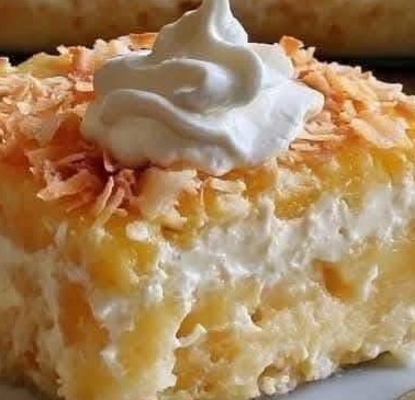 - In a large mixing bowl, combine the yellow cake mix, eggs, vegetable oil, vanilla extract, and milk. Add the drained crushed pineapple and shredded coconut. Mix everything together until fully incorporated.