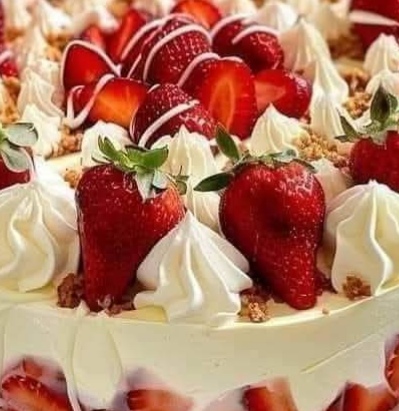 Gently fold in the strawberries.• Pour the mixture you prepared onto the cake and spread evenly.