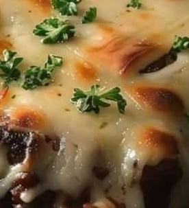 Assemble Casserole: Spread the mixture evenly in a greased 9×13 inch baking dish. Top with provolone cheese.